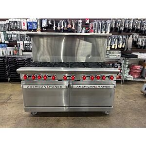 1. American Range AR-10 60" Natural Gas 6 Burner Heavy Duty Restaurant Range with Two Ovens - 390,000 BTU (USED)